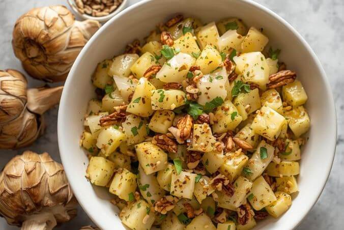 Przepis na sałatkę z pieczoną dynią Nelson różową – połączenie delikatnie słodkiej pieczonej dyni, kremowego sera i chrupiących orzechów, idealne na lunch lub lekką kolację.