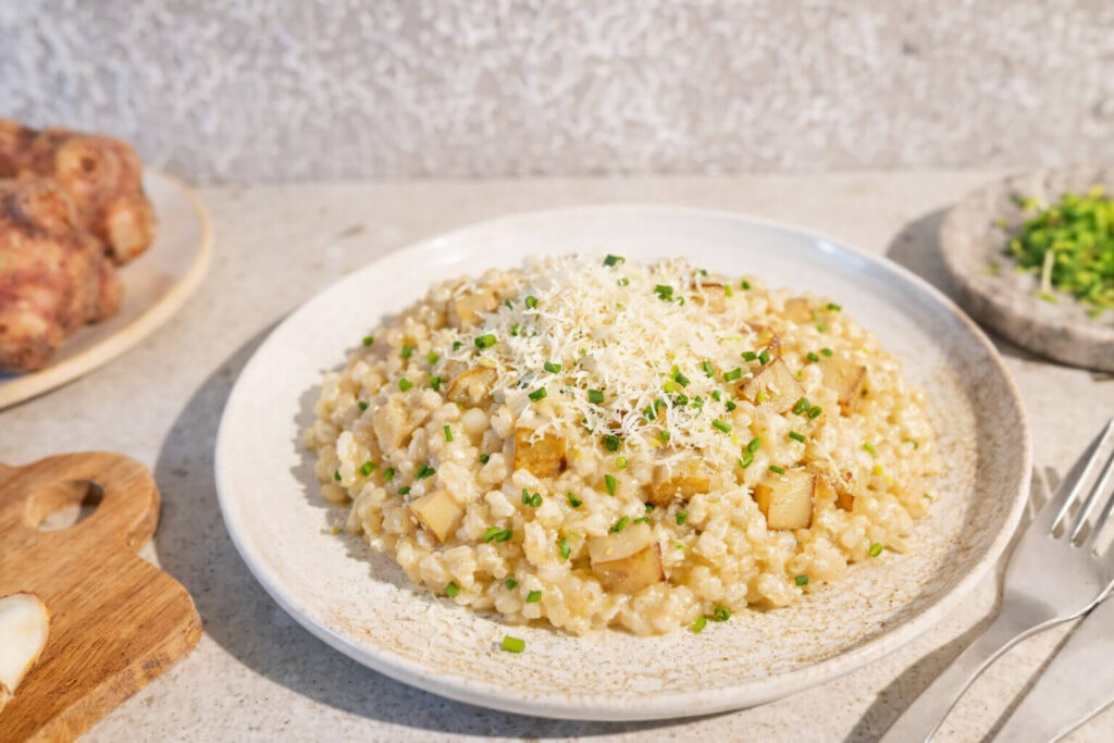 Kremowe, eleganckie risotto z delikatną nutą orzechową.